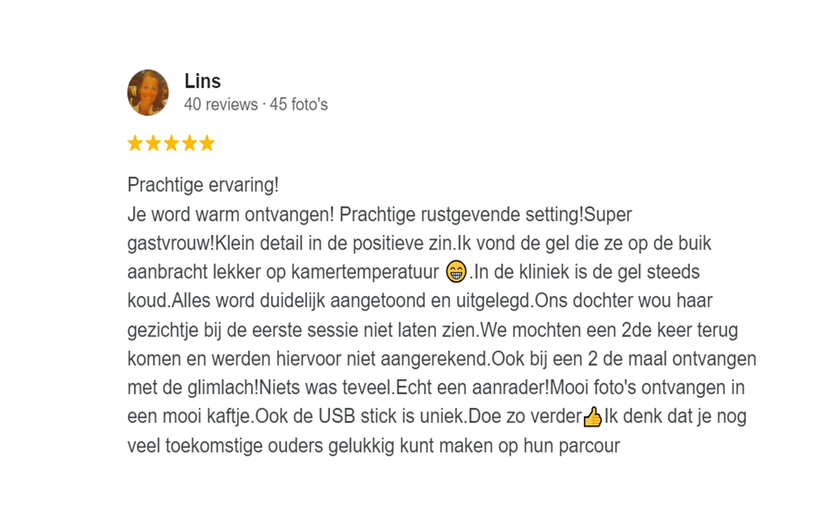 In onze warme en gastvrije omgeving bieden wij een onvergetelijke ervaring, waarin je samen met je partner, familie of vrienden deze bijzondere momenten kunt delen. Laat je overweldigen door de emoties van het zachte kloppen van het hartje, het kleine handje dat zwaait, en de adembenemende contouren van het gezichtje van je ongeboren kindje. Elk detail wordt liefdevol vastgelegd, zodat jij deze magische momenten voor altijd kunt koesteren.